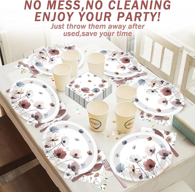 - Easy Clean Up: Heavy duty brown poppy oval dinnerware plates and napkins disposable just throw away after party, saving you time. You will be able to spend more time with you friends and family. Decorating the birthday party with our watercolor floral leaf tableware kit make the party even more memorable and leave an unforgettable memory for the graduates.