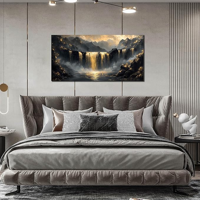 Mountain Pictures Wall Art for Living Room - Black and Gold Wall Decor Office - Modern Art Wall Decor for Bedroom Size 24" x 48"