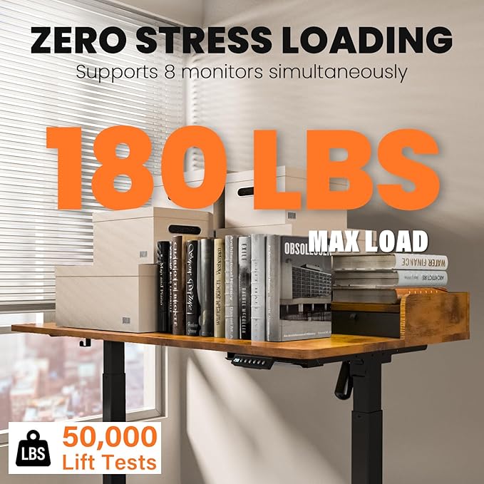 - Enhanced Motor for Smooth Operation: Featuring an upgraded industrial-grade motor, this electric standing desk delivers smoother and quieter performance than traditional models. Operating at a low noise level (below 50 dB) with consistently stable adjustment speeds, it ensures a seamless user experience even with long-term use. Rigorously tested for 50,000 cycles, the motor is built to provide lasting reliability and durability.