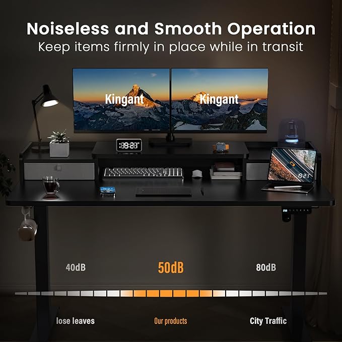 - Easy Assembly and Convenient Use: The Kingant standing desk is designed for hassle-free setup, featuring clear instructions and a full set of tools for quick assembly in just 30 minutes. With a one-touch height adjustment system, you can effortlessly switch between sitting and standing modes, helping to reduce fatigue from prolonged sitting and promoting a healthier work routine.