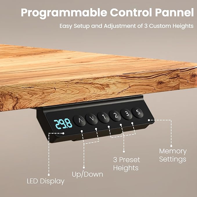 - Sturdy Performance: This electric standing desk is built with a high-strength carbon steel frame and a T-shaped stable structure, ensuring exceptional stability during height adjustments and providing reliable support for your ideal workspace setup. With a desktop weight capacity of up to 180 pounds and an adjustable height range from 28.3''-47.2'', you can conveniently save your preferred heights using three memory buttons and switch between them smoothly.