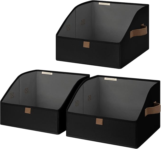 StorageWorks Closet Storage Bins, Trapezoid Organizer Box for Shelves, Fabric Clothes Bin, Foldable Organizing Baskets with Handles, Small, Black, 3-Pack