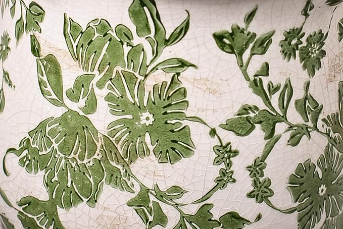 Ceramic Pots for Plants, Vintage Plant Pots with Drainage Hole, 6.11in. Planter for Indoor Plants, Crackle Glaze Finish Flower Pot, Perfect Tuscan Ceramic Planter for Gardening, Green