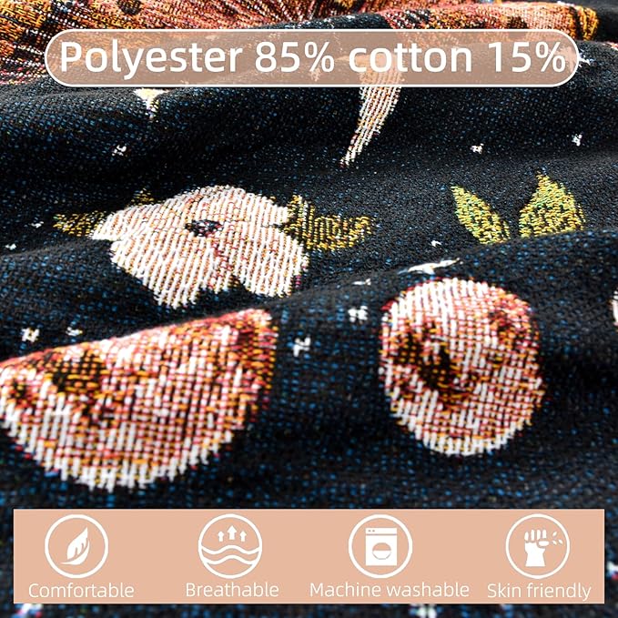 Boho Throw Blanket Reversible Cotton Bohemian Tapestry Hippie Room Decor Outdoor Blanket Double Sided (Black Butterfly 50"x60")
