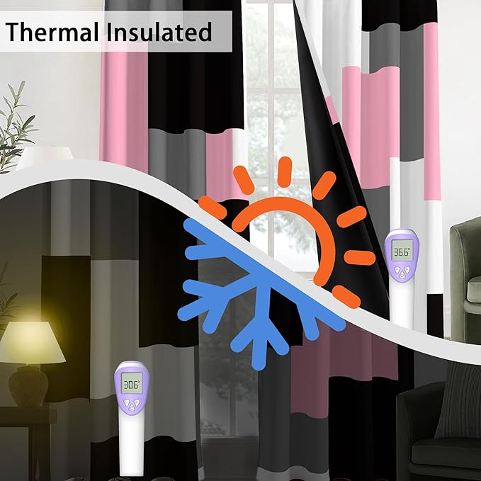 - THERMAL INSULATING SOUNDPROOF CURTAINS: Our elegant pink plaid print thermal insulated drapes can balance indoor and outdoor temperatures well, retain heat indoors during the winter and reject heat in the summer, and effectively energy saving. In addition, it can noise reducing and total privacy, providing a quiet and peaceful environment for you to relax in.