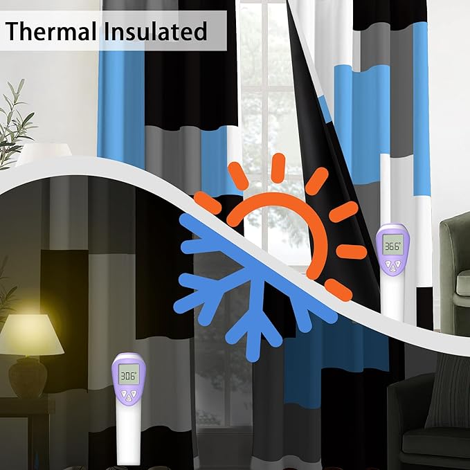 - THERMAL INSULATING SOUNDPROOF CURTAINS: Our elegant blue plaid print thermal insulated drapes can balance indoor and outdoor temperatures well, retain heat indoors during the winter and reject heat in the summer, and effectively energy saving. In addition, it can noise reducing and total privacy, providing a quiet and peaceful environment for you to relax in.