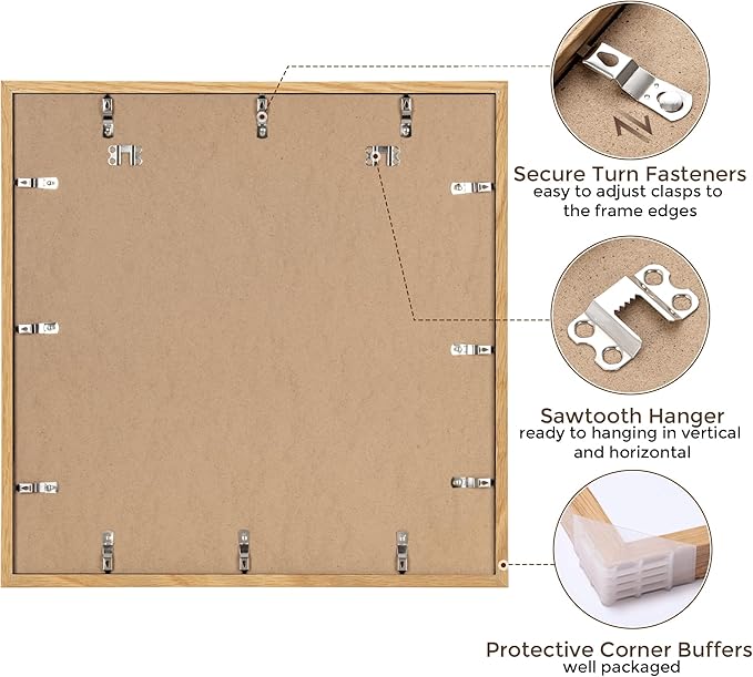 20x20 Picture Frame, Solid Oak Wood 20 by 20 Frame, Square Picture Frame 20 x 20 with mat for 16 x 16, 20x20 Wood Frame for Home Decor, 20 x 20 Poster Frame, Tempered Glass, Natural Oak Color, 1 Pack