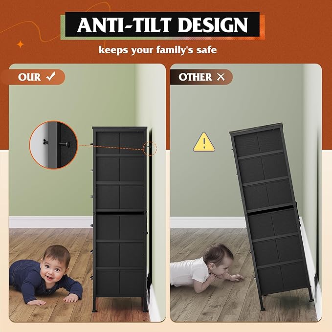 - 【✨ Stable Structure Safety Assured】This dressers designed with 15mm thickened metal steel frame with cross support rods for durability. Additional anti-tilt device can easily fix the cabinet to the wall, ensuring the safety of you, your family and pets, and enjoying a convenient life!