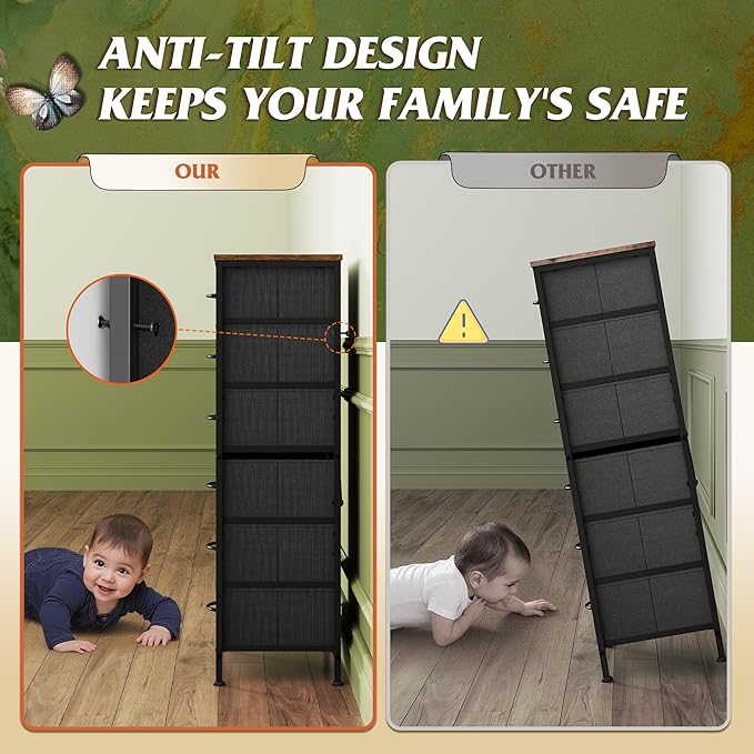 - 【✨ Ample Storage Dresser】Measures 11.7"D x 15.67''W x 39.37"H, our fabric dressers is equipped with 6 detachable fabric drawers, which facilitate the orderly storage of clothes and daily items, while the woodtop provides display space for artworks and small ornaments, and more life style!