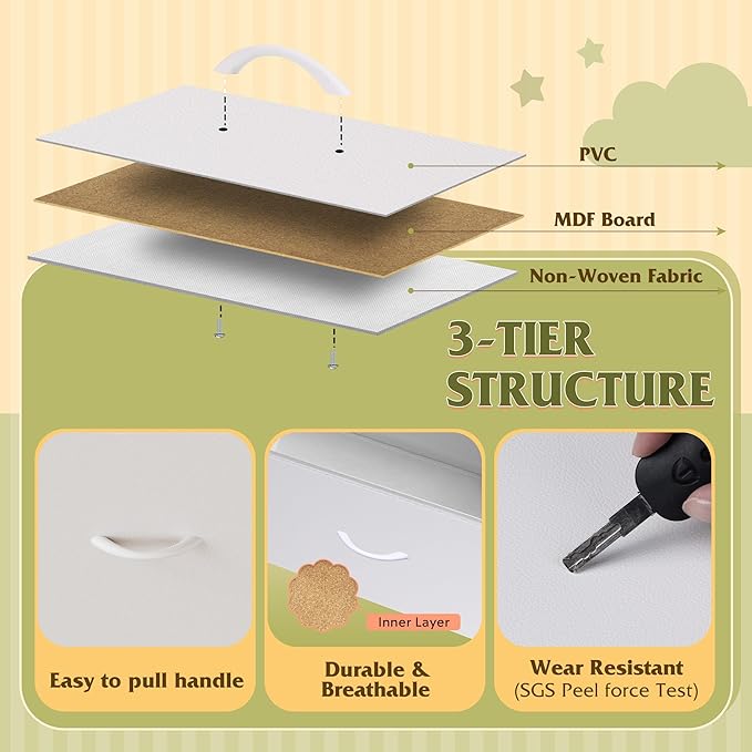 - 【✨ Durable Quality Material】The drawer surface is composed of three layers of high-quality fiberboard, easy-to-clean PVC and breathable non-woven fabric, the woodtop is made of P2 grade artificial wood, scratch resistant and easy to clean, the material process and safety are strictly tested by EPA&SGS, health and environmental protection, excellent quality for you and your family to create a peaceful life!