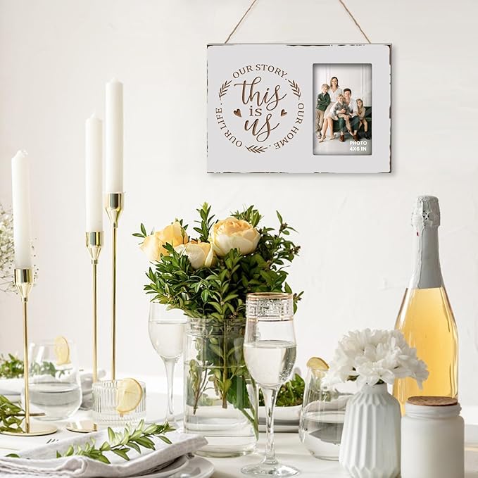 - 【ENGRAVE WORDS ON】: "This Is Us Our Life Our Story Our Home" text were deeply etched on Front .Picture frame featuring an deep engraved 3D words(carved by hand) compared with normal flat printing, very different texture. A photo will capture happy moments between lovers.