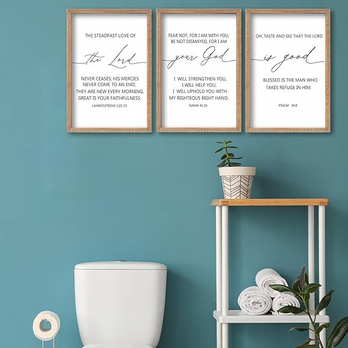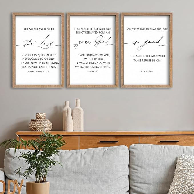 SRSZHIYUE Bible Verses Wall Decor Set of 3, 16"x11" Christian The Lord Your God Is Good Scripture Sign, Holy Religious Living Room Jesus Christ Prayer Faith Motivational Quotes Faith Wall Hang (Wood)