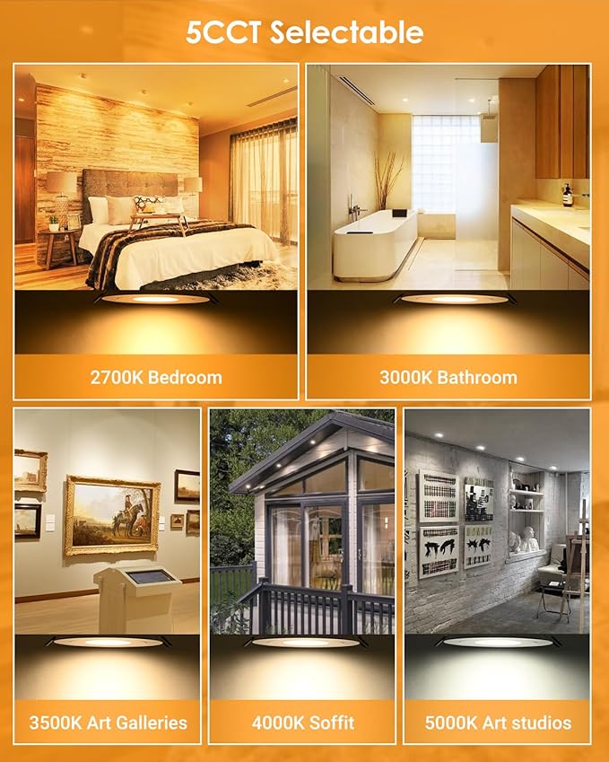 - 2. 5CCT Optional: Offers five selectable color temperatures: 2700K, 3000K, 3500K, 4000K, and 5000K to match any lighting preference