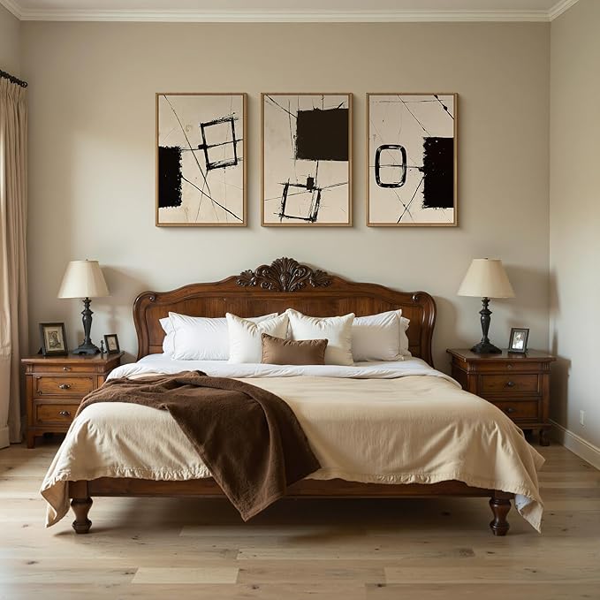 - 【Abstract Geometric Wall Art】The decorative paintings in this set feature a modern and neutral design with a focus on geometric shapes and lines. They skillfully incorporate elements of abstract art, using black and beige hues as the primary colors to create a sophisticated and contemporary aesthetic that complements any living space.
