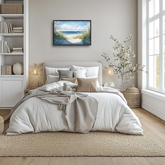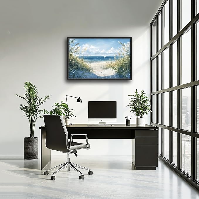 Framed Large Beach Wall Art for Living Room, Oversized Coastal Nautical Wall Decor Sailboat Canvas Seaside Pictures Modern Artwork Home Decoration for Living Room Bedroom Office 36"x24"