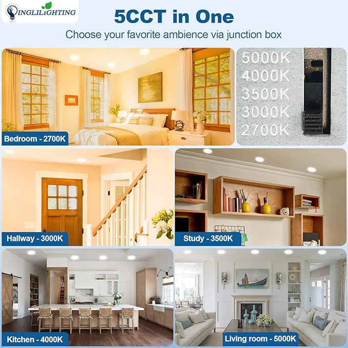 - 2.5CCT Opt2.5CCT Option: Choose from 5 color temperatures (2700K, 3000K, 3500K, 4000K, 5000K) to meet different lighting needs, whether it's for a cozy bedroom bathroom or a bright living room kitchen study.This light fixture is your perfect choice.ion: Choose from 5 color temperatures (2700K, 3000K, 3500K, 4000K, 5000K) to meet different lighting needs, whether it's for a cozy bedroom bathroom or a bright living room kitchen study.This light fixture is your perfect choice.