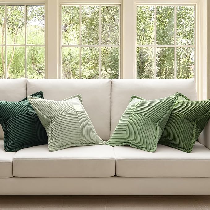 MIULEE Christmas Green Decorative Throw Pillow Covers 20x20 Inch 4 Packs Soft Boho Farmhouse Pillow Cases Mordern Corduroy Patchwork Cushion Cases for Couch Sofa Bed Gradient Home Decor