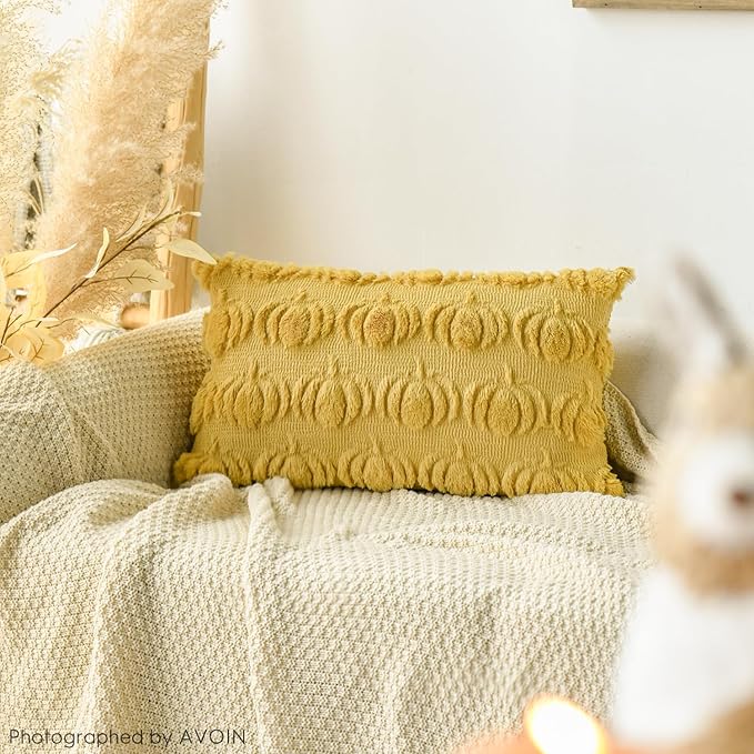 AVOIN colorlife Fall Pumpkin Ginger Throw Pillow Covers, 12 x 20 Inch Seasonal Autumn Thanksgiving Harvest Decoration Soft Plush Faux Fur Jacquard Cushion Case Decoration for Sofa Couch Set of 2