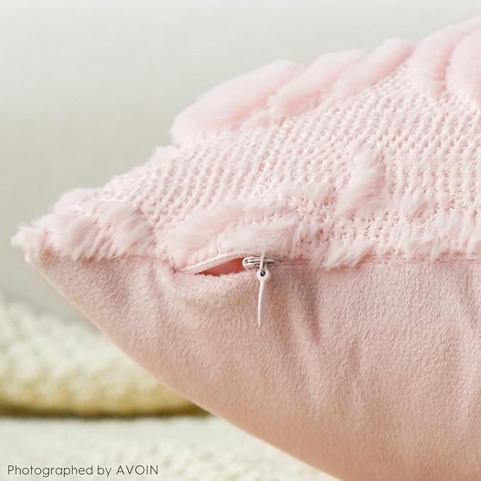 AVOIN colorlife Fall Pumpkin Pink Throw Pillow Covers, 12 x 20 Inch Seasonal Autumn Thanksgiving Harvest Decoration Soft Plush Faux Fur Jacquard Cushion Case Decoration for Sofa Couch Set of 2
