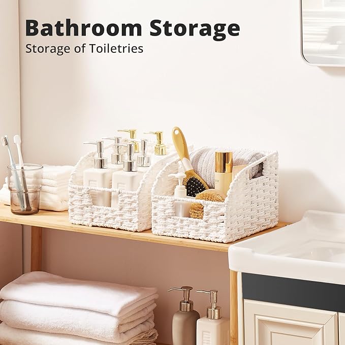 OIAHOMY Pantry Baskets for Organizing, Paper Rope Baskets with Built-in Handles, Wicker Storage Bints for Shelves, 2 Pack-White