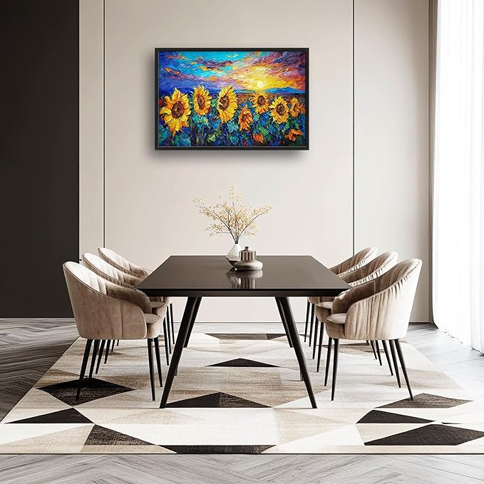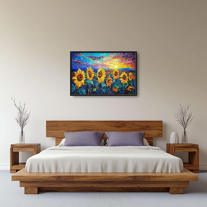 Sunflower Large Wall Art for Living Room Framed, Floral Wall Decor Pictures, Sunflower Field Landscape Canvas Print Painting, Aesthetic Artwork Bedroom Office Home Decor 36"x24"