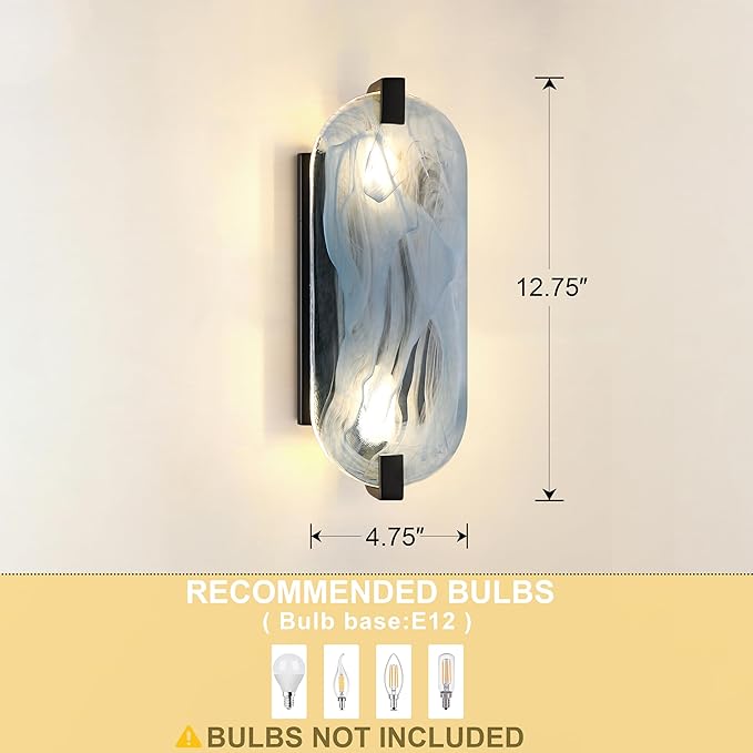 - 3.Glass Wall Sconce PERFECT FOR YOUR SPACE - The glass Wall Sconce is ideal for a variety of spaces for bathrooms.It's great in dining rooms,bars,kitchen counters,over sinks bedside living room bathroom library and in bedrooms.This Wall Lamp works with industrial, modern and transitional designs.