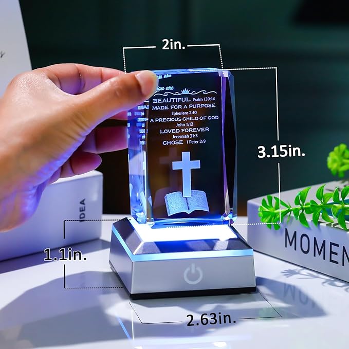Movdyka 3D Crystal Inspirational Bible Verse Decor Christian Gifts for Women Men Faith, Religious Gift You are Beautiful Keepsake with Colorful LED Night Light, Spiritual Gifts Ideas for Birthday