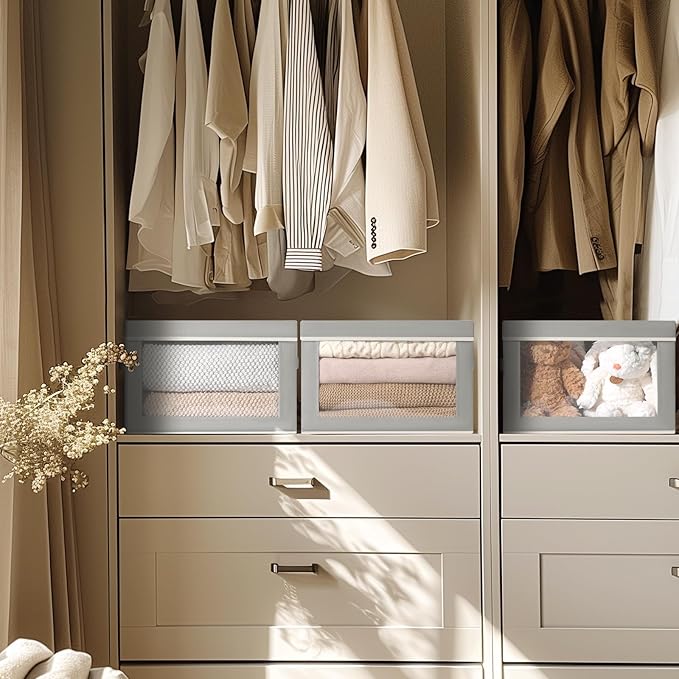- [Practical Design] The front of the storage bins have been chosen to be transparent. Meanwhile, the lid enhances the flexibility of using the storage box, when you are storing out-of-season clothes, the lid can keep the clothes clean all the time