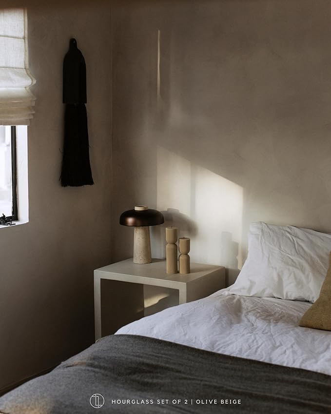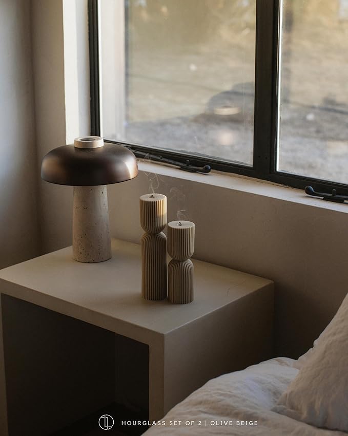 LAWA Hourglass Pillar Candle - Large Beautiful Handmade Pillar Scented Soy Wax Candle Elegant Bubble Aesthetic Candle Housewarming Gift Home Room Shelf Decor Idea Olive Beige (Set of 2)