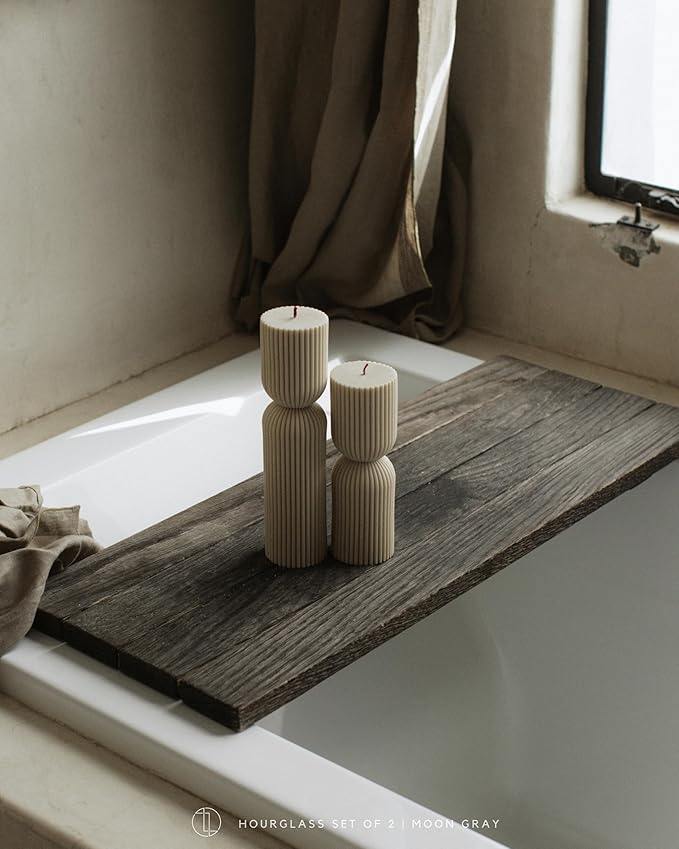 LAWA Hourglass Pillar Candle - Large Beautiful Handmade Pillar Scented Soy Wax Candle Elegant Bubble Aesthetic Candle Housewarming Gift Home Room Shelf Decor Idea Moon Gray (Set of 2)