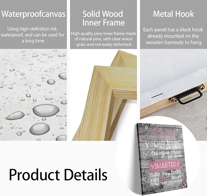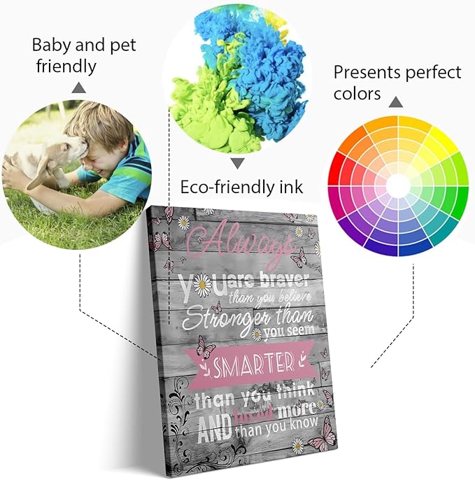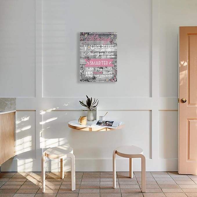 - PREMIUM DESIGN: Beautiful rustic wood-look canvas featuring butterflies, daisies, and an inspiring quote in elegant gray and pink color scheme