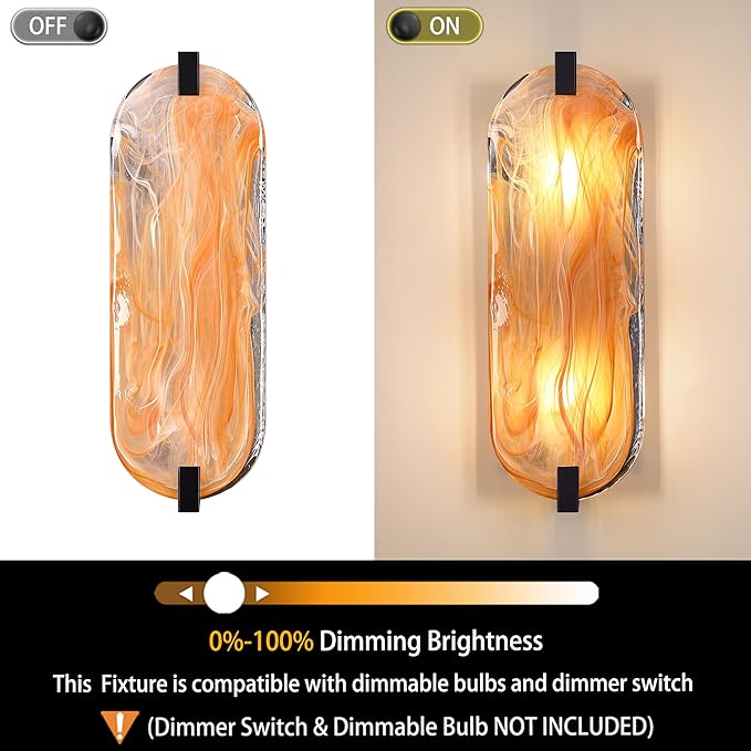 - 3.Glass Wall Sconce PERFECT FOR YOUR SPACE - The glass Wall Sconce is ideal for a variety of spaces for bathrooms.It's great in dining rooms,bars,kitchen counters,over sinks bedside living room bathroom library and in bedrooms.This Wall Lamp works with industrial, modern and transitional designs.
