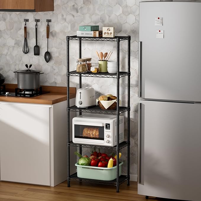 - Convenient Home Storage: Metal wire shelves with adjustable spacing make perfect for narrow spaces or room corners such as kitchens, bathrooms, laundry rooms, balconies, garages, entries, or offices.
