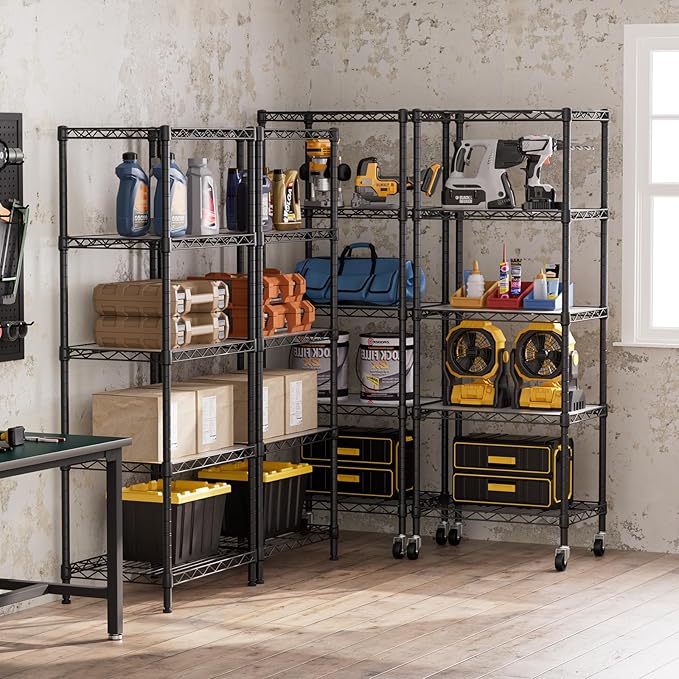 - Convenient Home Storage: Metal wire shelves with adjustable spacing make perfect for narrow spaces or room corners such as kitchens, bathrooms, laundry rooms, balconies, garages, entries, or offices.