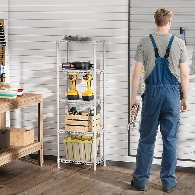 - Convenient Home Storage: Metal wire shelves with adjustable spacing make perfect for narrow spaces or room corners such as kitchens, bathrooms, laundry rooms, balconies, garages, entries, or offices.