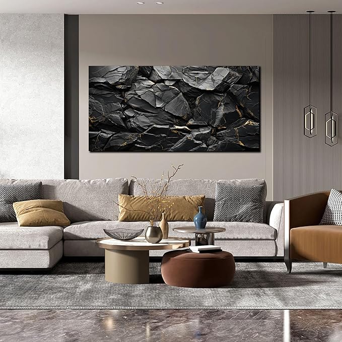 - SIZE OF WALL ART: Titled "Black Stone". The size of wall art decor is 48"W x 24"H (120cm x 60cm)