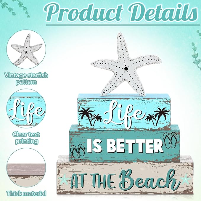 - Cute Summer Wooden Design: the farmhouse tiered tray decor set includes starfish sign and 3 wood blocks printed with ocean style; It's a novel way to incorporate goodwill and luck into your living space, creating summer day atmosphere
