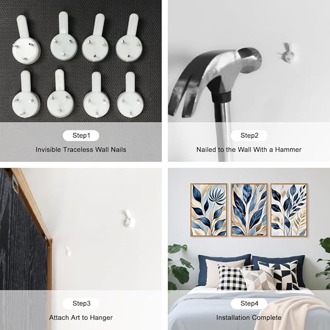 - 【Easy to Hang】Each framed canvas comes with metal hooks and non-trace nails, making installation quick and hassle-free. You can have these stylish artworks up on your walls in just a few minutes, adding an instant upgrade to your decor. No need to worry about complicated hanging processes.