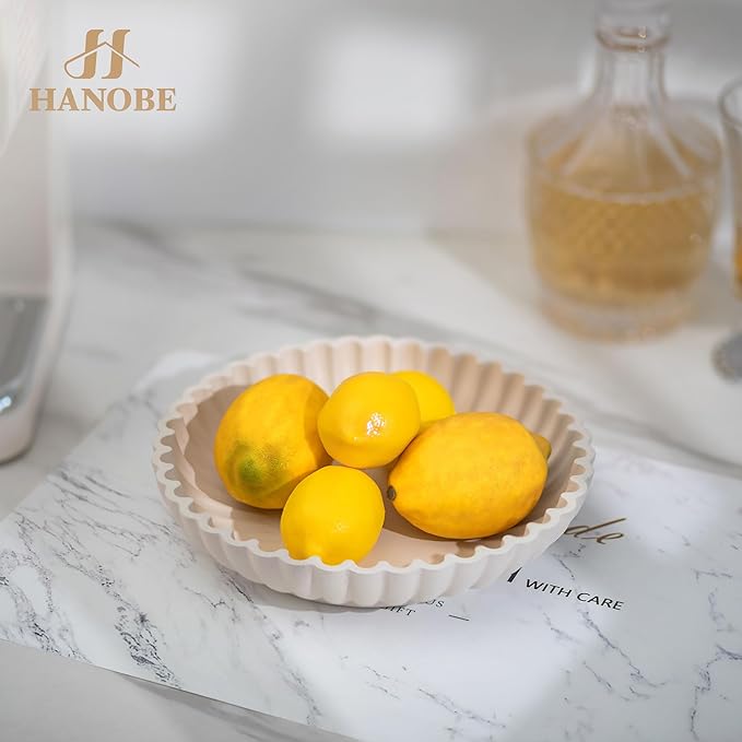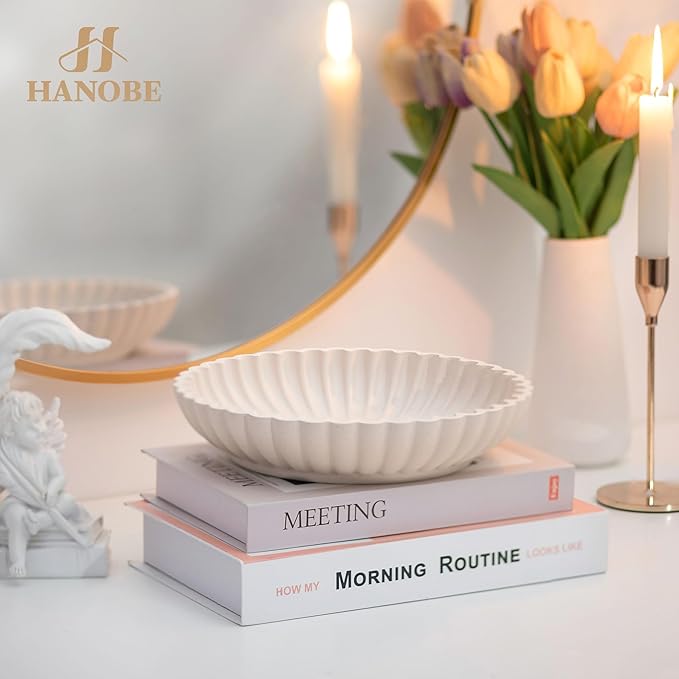 Hanobe Decorative Bowl Home Decor: Large Centerpiece Bowls for Living Room Coffee Table Resin Scalloped Ruffle Key Tray for Entryway Console Accent Display Fruit for Dinning Table Kitchen Counter
