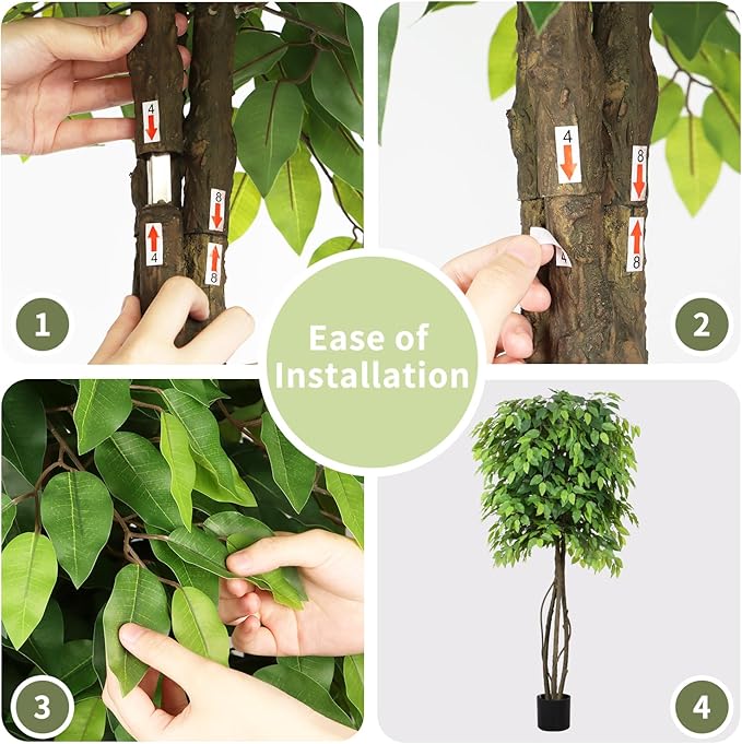 - 【Great Gift Choice】Besides being an eye catching addition to your home, our faux Ficus Tree also makes a thoughtful and charming choice for friends and family. It’s the perfect for Housewarming, Birthdays, Christmas, Holidays, Thanksgiving, New Year’s, and more.If you have any questions during use, you can contact us at any time,we will solve your problem as soon as possible.
