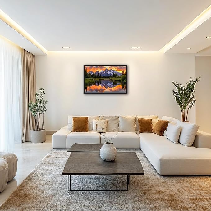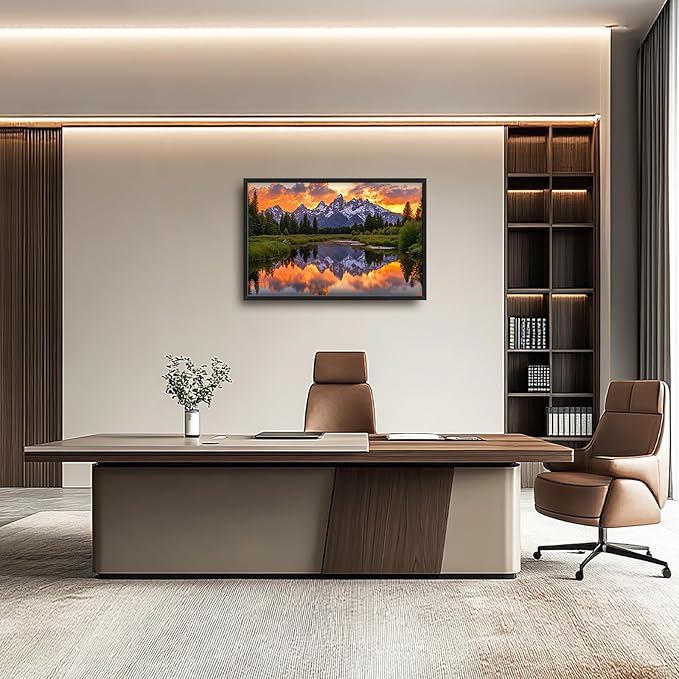 Large Mountain Lake Wall Art for Living Room, Forest Tree Canvas Wall Decor, Sunset Pictures Framed Painting, Natural Landscape Artwork for Bedroom Office 36L'' × 24W''