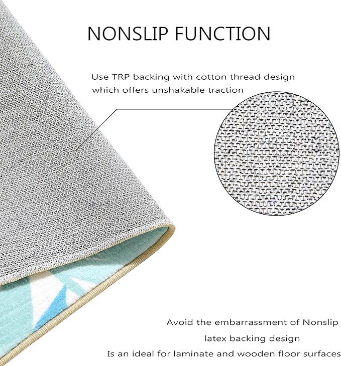 - [NON SLIP TPR BACKING] -- The non-slip TPR backing prevents slipping, tripping and holds the funky bedroom rug more firmly in place. This summer tropical rug used upgraded material makes mat odor-free and protect your floors from moisture and scratches