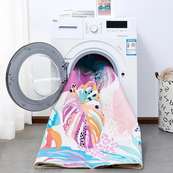 - [NON SLIP TPR BACKING] -- The non-slip TPR backing prevents slipping, tripping and holds the funky bedroom rug more firmly in place. This summer tropical rug used upgraded material makes mat odor-free and protect your floors from moisture and scratches