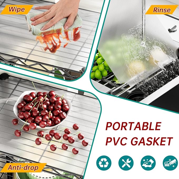 - The shelf is specially coated for protecting it from any water, rust or corrosion. Not worry to place the shelving unit in your kitchen or bathroom, easy to wipe down clean