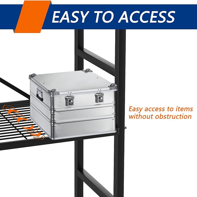 - SCREW NUT STRUCTURE: The metal storage rack is assembled with screws and nuts,and the screw fixing structure has stronger load-bearing without the need for plastic buckles. Free up more space for your garage,office,kitchen,hotel,laundry room,supermarket,and more.