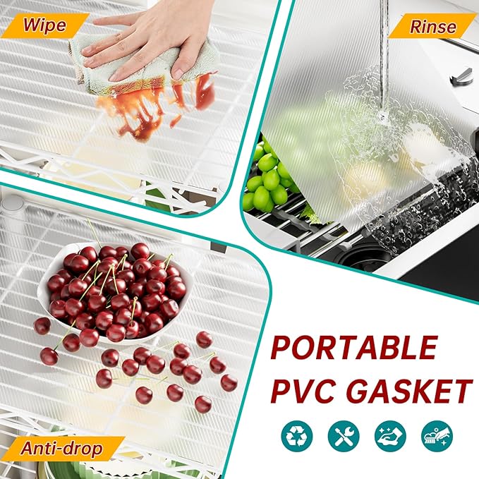- The shelf is specially coated for protecting it from any water, rust or corrosion. Not worry to place the shelving unit in your kitchen or bathroom, easy to wipe down clean