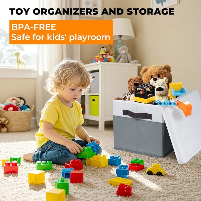 - [NO MORE WORRIES ABOUT Quality and Smells] Our storage containers are made of tear-resistant fabric with odorless plastic panels, ensuring reliable durability and security for baby nursery organization. Each totes for storage has two strong handles, capable of holding up to 30 lbs heavy supplies.