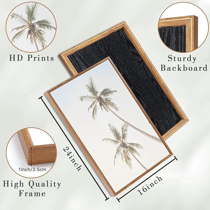 - 【Premium Quality Palm Tree Paintings】Printed on high-quality canvas with durable inks, this summer vibe wall art captures plain colors and fine details, ensuring it looks great for years. The water-resistant canvas and sturdy vintage frame enhance its durability, making it a lovely addition to any room.