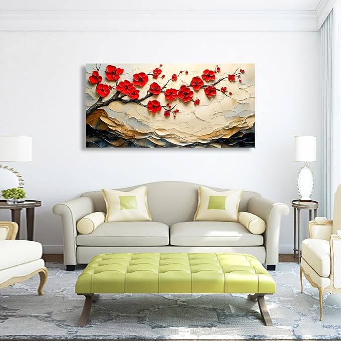 - 4.【Easy-to-use wall decoration art】-Red Flower Tree artwork sign comes with pre-installed hooks on the back for you to conveniently hang it on the wall and it is easy to remove when not in use;the hanging design can save you the trouble to use adhesive and prevent the wall from being stained by glue and leaving marks.