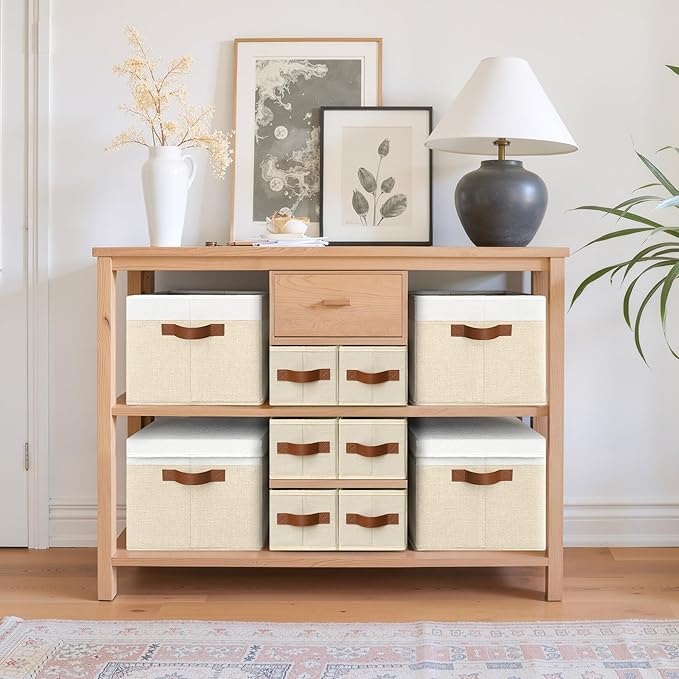 - Easy to Use with PU Handles: Features two PU leather handles that are securely stitched for comfortable grip. Easily pull out or carry the bin from shelves, closets, or tight spaces.